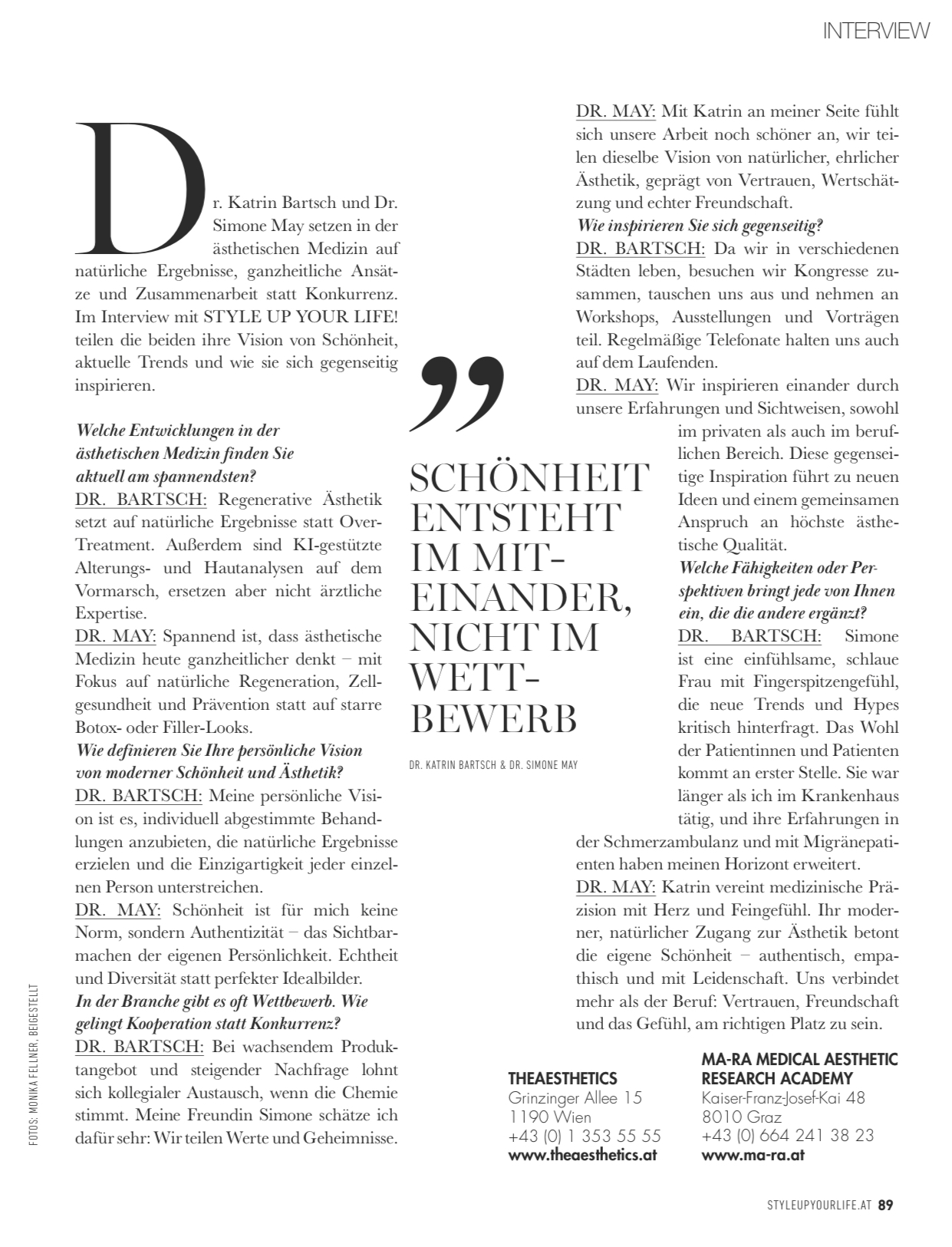 Im aktuellen STYLE UP YOUR LIFE! Magazin sprechen zwei starke Ärztinnen über moderne ästhetische Medizin: